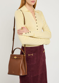 Info & Care Mulberry grained leather bucket bag Top handle, detachable adjustable shoulder strap, belt through front and gathered sides, metallic debossed logo, designer-engraved hardware, internal patch pocket, suede lining Open top Size & Fit Width: 8 inches/ 20.5cm Height: 8.5 inches/ 21.5cm Depth: 5 inches/ 12.5cm Top handle drop: 3.25 inches/ 8cm Min. shoulder strap drop: 16.5 inches/ 42cm Max. shoulder strap drop: 20 inches/ 51cm
