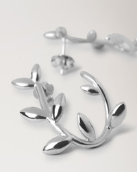 Find your finishing touch with our Mulberry Leaf Hoop Earrings – delicately designed to elevate any outfit. Details A pair of silver Mulberry Leaf earrings. - Delicate Mulberry Leaf design - Made in Italy - Please note that this item is non-returnable for reasons of hygiene and safety Width ¾" Length 1" Material Sterling Silver 100% Sterling Silver This product's code is QE2416-000D111