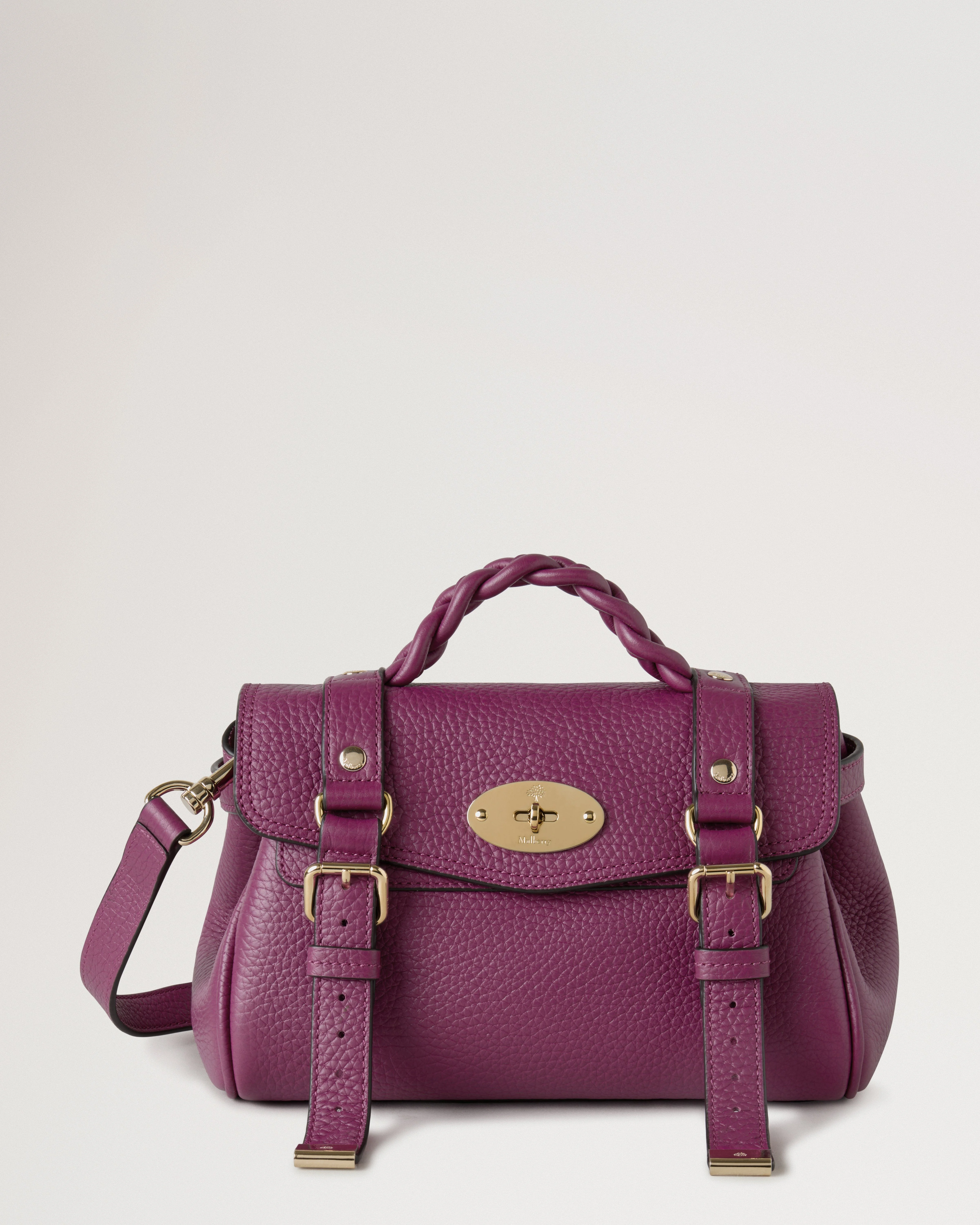 The Mini Alexa effortlessly combines elements from two iconic Mulberry styles: the Bayswater bag and the Elkington briefcase. The result is a miniature version of an understatedly cool satchel complete with the signature Mulberry Postman’s Lock and belt buckle and strap hardware. Carry by the plaited leather top handle or wear with the adjustable cross body strap. Details A mini version of the cult bag that epitomises laidback luxury. - Soft Gold hardware finish - Postman’s Lock closure - Handcrafted braided top handle - Adjustable and detachable leather strap - One main compartment - One internal slip pocket Height 6¾" Width 8¾" Depth 4" Handle Drop 2" Shoulder Strap 41" Weight ¼kg, approximately Material Heavy Grain A soft heavy bovine leather with a beautiful soft and supple hand feel. The surface will gradually become even softer with use adding to the beauty of the leather. This product's code is RL6595-736J512