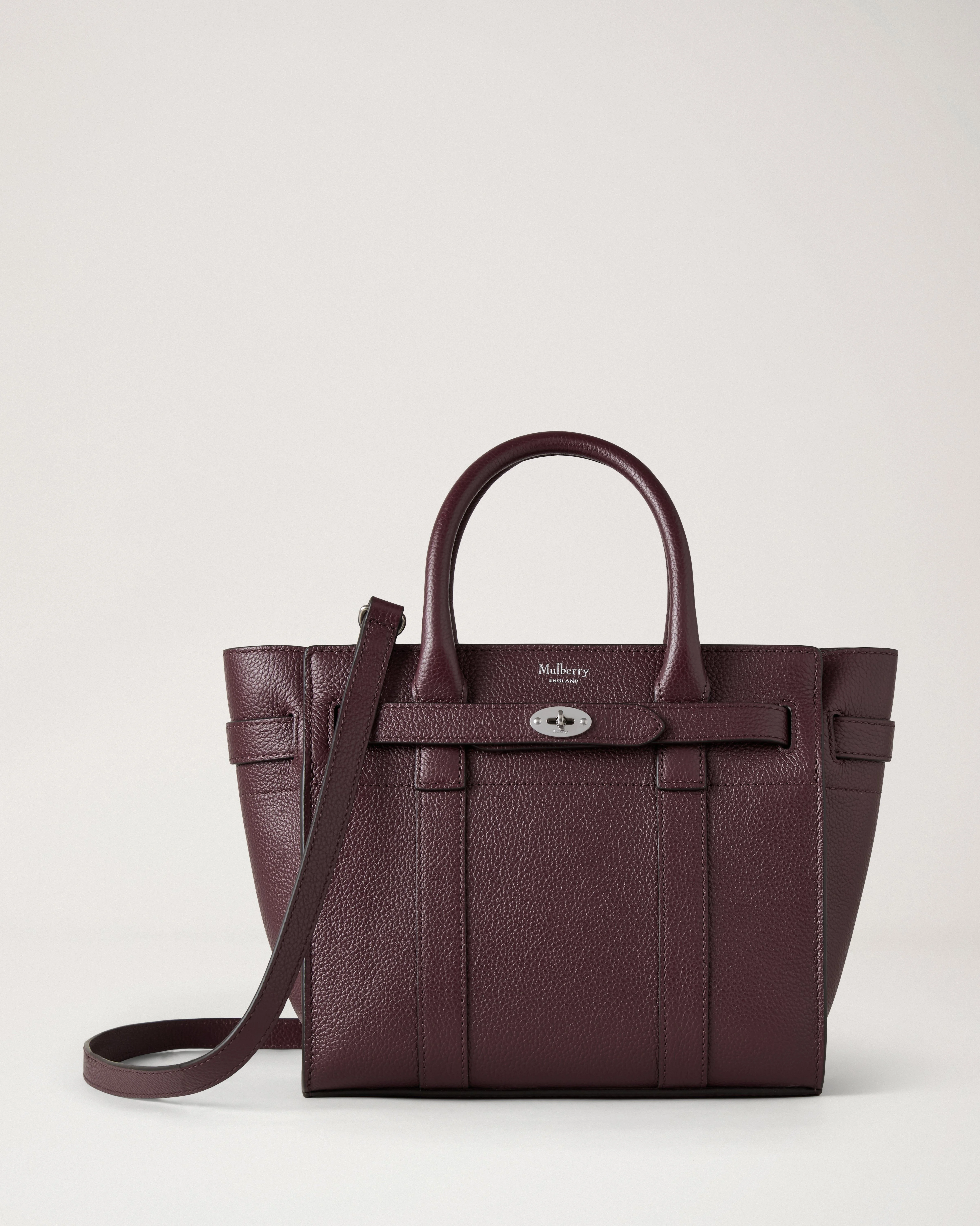 The Mini Zipped Bayswater is a scaled-down version of the original, retaining all the classic detailing including belted leather straps and a miniature Postman’s Lock. Details A smaller version of the classic zipped bag. - Belt detailing with Postman's Lock hardware - Silver hardware finish - Foil embossed Mulberry signature - Full zip closure - Two leather top handles - Adjustable and detachable leather strap - One main compartment - Internal slip pocket - Suede lining Height 8¼" Width 9" Depth 5" Shoulder strap length Min 19¾" - Max 23¼" Handle drop 4" Weight ¼kg, approximately Material Small Classic Grain A soft cow leather with a small printed grain effect. The leather is lightly finished to protect the grain surface. This product's code is HH4949-205K560
