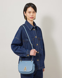 Inspired by British countryside pursuits, the Amberley borrows its shape and detailing from traditional equestrian styling. This small version was designed to be worn on the shoulder or hands-free across the body. The geometrical Rider's Lock closure is also a reinterpretation of our iconic Postman's Lock - a bold and modern signature for this collection. Details A small satchel bag with our signature Rider's Lock closure. - Soft Gold hardware finish - Rider's Lock closure - Adjustable shoulder strap with functional buckle detailing - Foil embossed Mulberry signature - Refined belt detail on the side - Internal slip pocket - Suede lining Height 7" Width 7¾" Depth 3¼" Shoulder strap drop Min 18½ - Max 20¾" Weight ¼kg, approximately Material Small Classic Grain A soft cow leather with a small printed grain effect. The leather is lightly finished to protect the grain surface. This product's code is HH4966-205U921