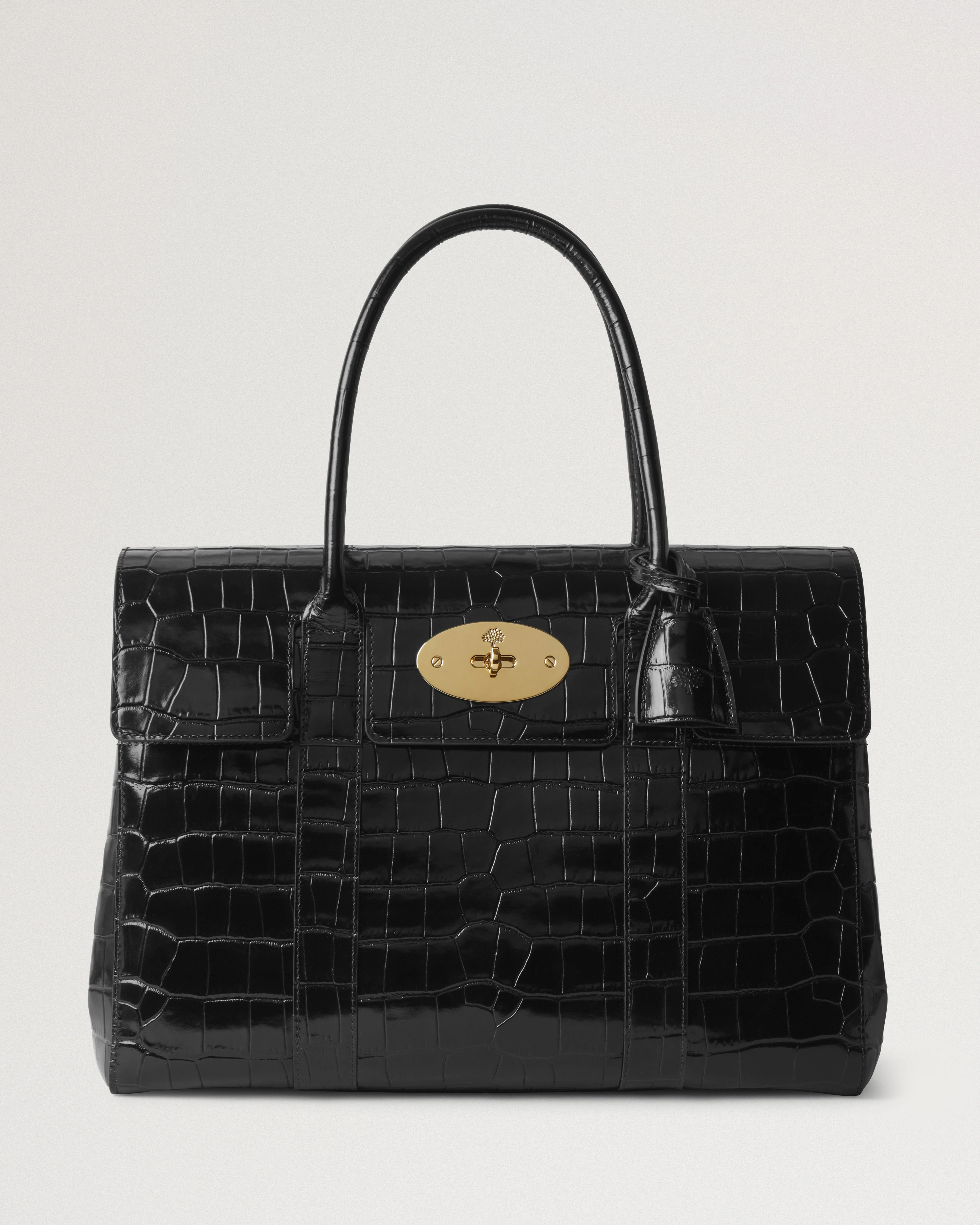 The Bayswater is considered a Mulberry bag icon. A timeless and classic shoulder bag, it unites the very best of Mulberry’s craft heritage and effortless style. The understated shape and finish showcases the exceptional level of leather quality, proudly finished with our signature Postman’s Lock. The interior belted sides can be adjusted to give more space inside, making the Bayswater ideal for any lifestyle. Details This iconic leather bag can be carried by the handle, in the crook of the arm or over the shoulder. - Soft Gold hardware finish - Postman's Lock closure - Two leather top handles - One main compartment - One zip pocket - Two slip pockets - Microfiber lining Height 10½" Width 14¼" Depth 6½" Handle drop 6" Weight ½kg, approximately Material Shiny Small Croc A high-shine cow leather with an embossed croc pattern. This product's code is HH9589-641A100