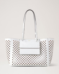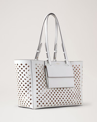 Inspired by the Great British greenhouse, and featuring an intricate knife-cut latticed pattern demonstrating the exquisite leathercraft of our artisans, this Perforated Tote is the perfect style for the summer months – and is designed for a life on the go. Details A perforated, lattice-patterned leather tote bag. - Soft Gold hardware finish - Adjustable handles - Internal hook closure - Detachable pouch with press stud closure Height 10¼" Width 17¾" Depth 6" Handle Drop 10½" Material Perforated Leather A knife-cut bovine leather with a resin-backed finish. This product's code is HH9727-709W100