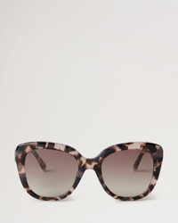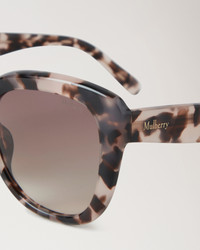 These Poppy Sunglasses are the purrr-fect way to protect yourself from the sun. An oversized cat eye silhouette, the Poppy pair features Mulberry signature temple detailing. Details A pair of oversized cat eye sunglasses. - Oversized cat eye silhouette - Mulberry signature temple detailing - Lens category: 2 - Gradient lenses - Store in case when not worn and clean regularly for longevity - These sunglasses come with a case, a lens cloth or bag, and a branded cardboard box. Lens Height 2" Lens Width 2½" Bridge ¾" Arm Length 5½" Material Bio Acetate & Bio Nylon These frames are made from bio acetate, a biodegradable and recyclable cellulose acetate. This is gained from renewable resources such as seed fibres derived from cotton, and wood fibres derived from conifers and deciduous trees. This product's code is RS5503-000J987