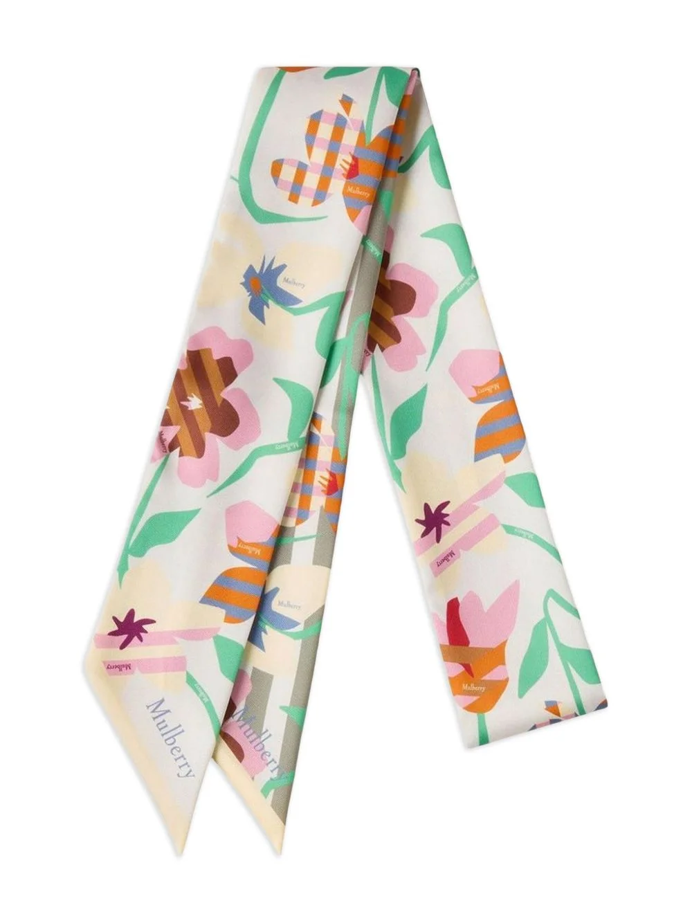floral-print scarf Highlights - White - Floral pattern - Striped detail - Pointed ends Made in Italy Composition Recycled Polyester 100% SIZE & FIT Measurement LENGTH 47.24 in(120 cm) WIDTH 2.36 in(6 cm) Washing instructions Read Manufacturer Guidelines