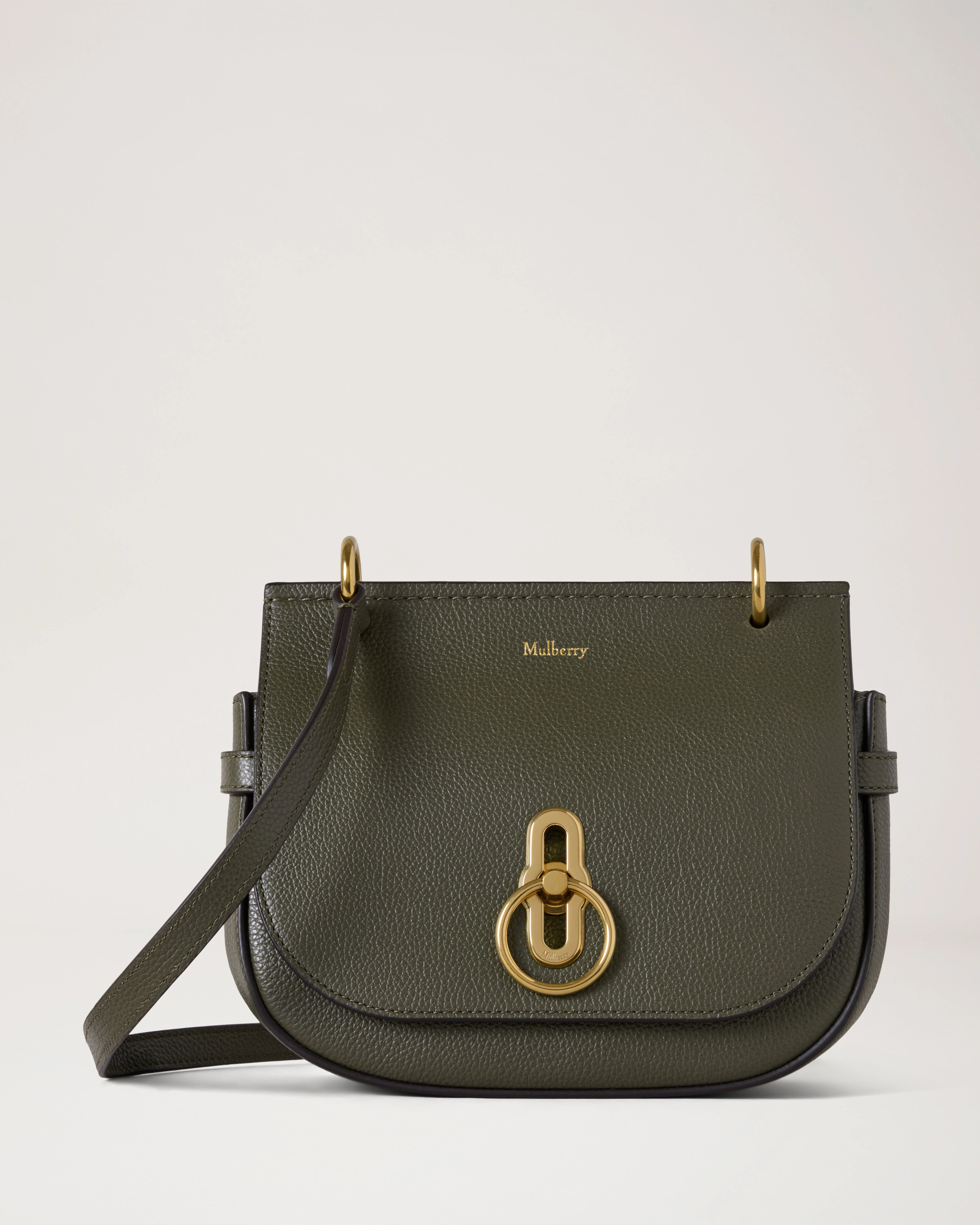Inspired by British countryside pursuits, the Amberley borrows its shape and detailing from traditional equestrian styling. This small version was designed to be worn on the shoulder or hands-free across the body. The geometrical Rider's Lock closure is also a reinterpretation of our iconic Postman's Lock - a bold and modern signature for this collection. Details A small satchel bag with our signature Rider's Lock closure. - Brass hardware finish - Rider's Lock closure - Adjustable shoulder strap with functional buckle detailing - Foil embossed Mulberry signature - Refined belt detail on the side - Internal slip pocket - Suede lining Height 7" Width 7¾" Depth 3¼" Shoulder strap drop Min 18½ - Max 20¾" Weight ¼kg, approximately Material Small Classic Grain A soft cow leather with a small printed grain effect. The leather is lightly finished to protect the grain surface. This product's code is HH4966-205Q749