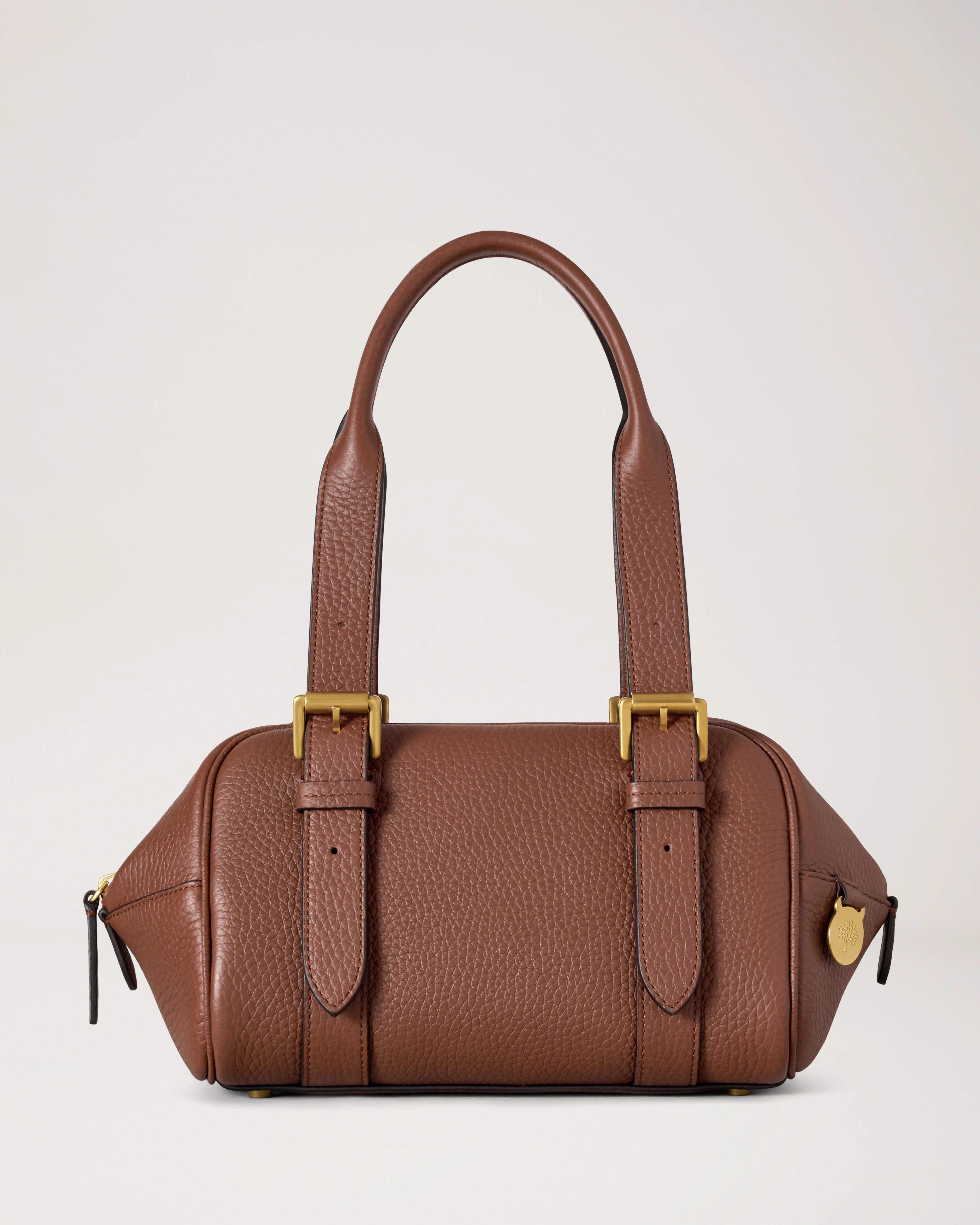 Inspired by the archival Mabel style, our sleek, chic Small Boston bag is ideal for ferrying your everyday essentials about town. Featuring modern, equestrian-inspired buckling, a zipped closure, and a Mulberry Tree medallion, make the Small Boston your go-to city bag. Details A small boston bag designed for the everyday. - Two adjustable leather top handles - Brass hardware finish - Zip closure - Mulberry Tree medallion fob - One internal slip pocket - Foil embossed Mulberry signature - Mulberry Tree cotton lining - Four feet on base Height 6" Width 9½" Depth 6" Material Heavy Grain A soft heavy bovine leather with a beautiful soft and supple hand feel. The surface will gradually become even softer with use adding to the beauty of the leather. This product's code is HH0020-736G222