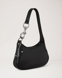 We delved deep into the Mulberry archives to create the Small Hackney Shoulder Bag, a sleek and soft style that features a snap hook clasp and Mulberry Tree rivets. Each bag passes through the hands of 30 artisans – a lot of work for such an effortless, on-the-go style. Details A small, slouchy shoulder bag. - Silver hardware finish - Shoulder strap with signature snap hook detailing - Zip closure - One internal slip pocket - Blind embossed Mulberry signature - Mulberry Tree rivet detailing Height 6¼" Width 12¾" Depth 3½" Handle drop 11¾" Material High Shine Leather A smooth bovine leather that has been polished to achieve a high gloss finish. This product's code is RL9020-213A100