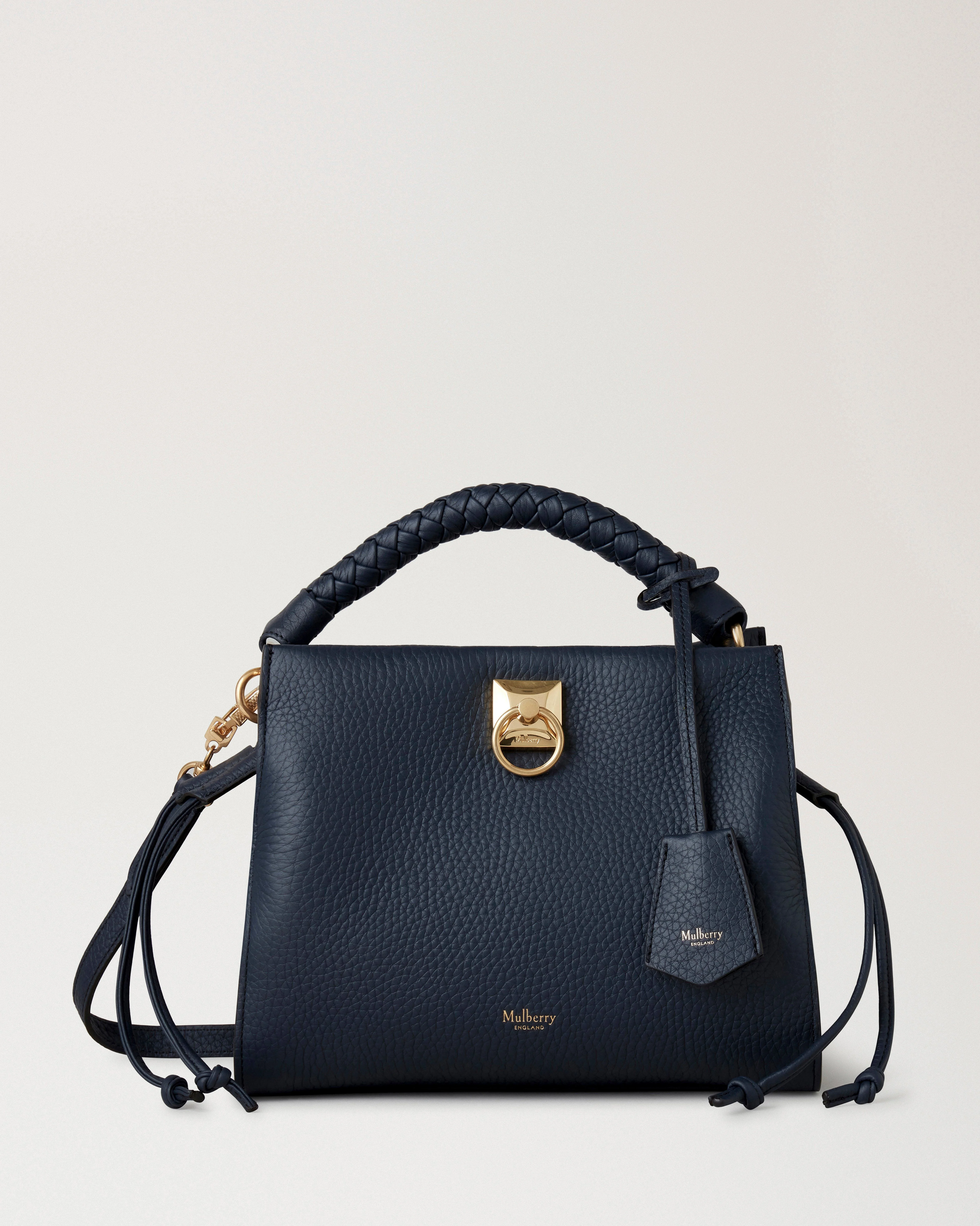 The Small Iris presents a modern, soft structure and a natural versatility. Double pull cords to either side enhance the bag’s tactility and allow for a personalised shape. Its ladylike silhouette is enhanced with the Keystone Lock, which reflects a rich history of British craftsmanship. Details A bag with a modern, soft structure and natural versatility. - Soft structure - Keystone Lock with magnetic closure - Shoulder strap - Woven handle - Detachable fob with foil embossed signature - Two side ties for adjustable volume and shape - Foil embossed signature on front panel - One main compartment - Internal slip pocket - Internal zipped pocket - Suede lined - Brass hardware finish Height 8¼" Width 9½" Depth 2¾" Shoulder strap drop Min 18" - Max 19¾" Handle drop 3¼" Weight ¼kg, approximately Material Heavy Grain & Silky Calf A bovine leather with a rounded grain and a soft, luxurious hand feel. This product's code is HH6267-000U888