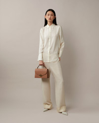The ultimate in day-to-night dressing, the Lana Top Handle is characterised by its sleek silhouette and structured upright handle. This elegant style showcases our new statement hardware, the Foundry Lock – a contemporary, Daliesque twist on the iconic Postman's Lock. Details A new, top handle bag with a twisted, contemporary lock. - Sophisticated High Gloss Leather finish - Brass hardware finish - One top handle - One adjustable leather strap - New Foundry Lock hardware - a modern twist on our iconic Postman's Lock - Nappa lining - One internal slip pocket - One exterior slip pocket Height 6½" Width 9¼" Depth 3¾" Strap length Min 37½ - Max 43 Handle drop 3" Strap drop 18½" Weight ¼kg, approximately Material High Gloss Leather A smooth bovine leather that has been polished to achieve a high gloss finish. This product's code is HH9267-615E126