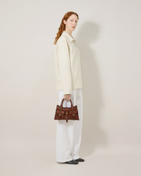 A small version of our Roxanne bag, itself a modern update on our 2004 style, the Small Roxanne takes all the Y2K attitude of the original and updates it, with brass buckling and streamlined details. Features two front pockets ideal for smaller items, as well as a detachable and adjustable strap for multiple ways of wearing. Details A Small version of our Y2K-inspired Roxanne style. - Brass hardware finish - Detachable and adjustable strap - Two top handles - Two external front pockets with magnetic closure - One internal slip pocket - Buckle detailing - Foil embossed Mulberry signature Height 5¼" - 6¾" Width 9½" - 11" Depth 2¼" - 4" Handle Drop 4¾" Strap Length 27¼" - 33" Strap Drop (from middle hole) 19¾" Weight ¼kg, approximately Material NVT This product is made with our Legacy NVT leather, a renewed take on Mulberry’s most classic leather. This leather may soften and darken with age enhancing its natural characteristics and creating a unique patina of its own. This product's code is HH9978-730G110