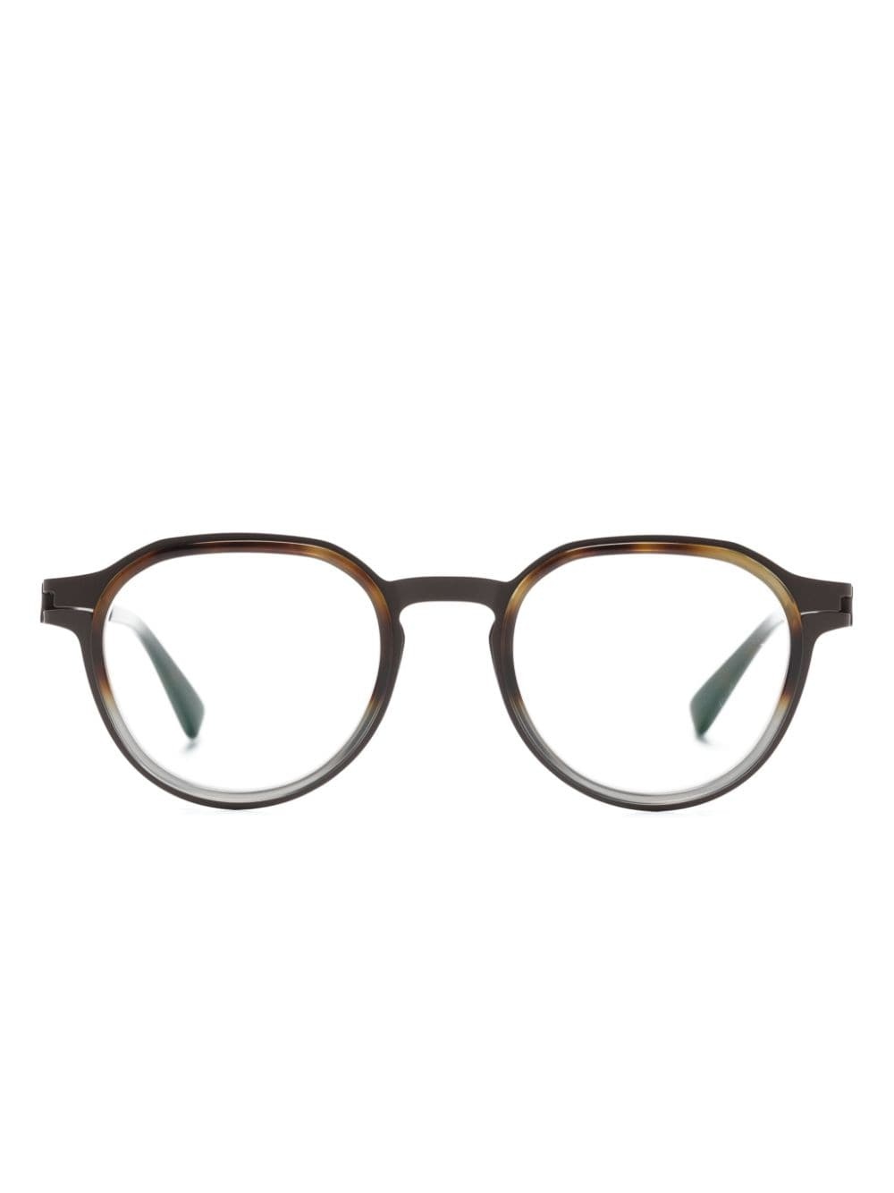 round-frame glasses brown round frame clear lenses straight arms curved tips All glasses from FARFETCH are sold as non-prescription frames. Imported Composition Acetate 100% SIZE & FIT Measurement Arm Length 5.51 in(14 cm) Bridge Width 0.78 in(2 cm) Lens Diameter 1.88 in(4.8 cm) Total Width 5.23 in(13.3 cm)