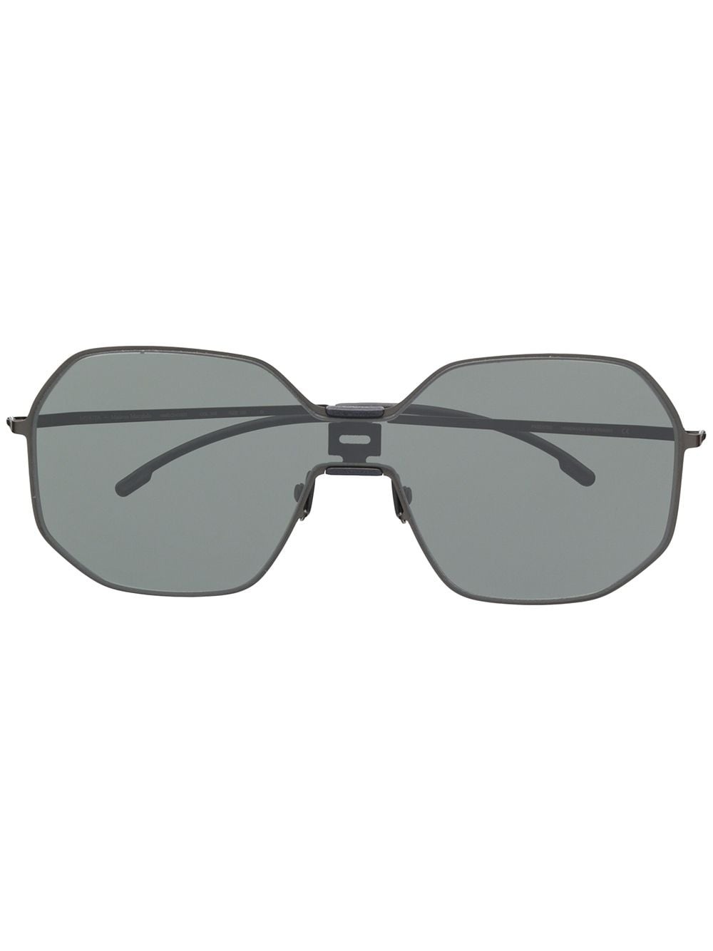geometric frames sunglasses Black geometric frames sunglasses from Mykita featuring dark tinted lenses, a straight bridge and straight arms with curved tips. This item is unisex. This item comes with a protective case. Imported Composition Acetate 100% SIZE & FIT Measurement Bridge Width 0.8 in(2 cm) Lens Diameter 2.4 in(6 cm) Total Width 5.8 in(15 cm) Arm Length 5.3 in(13.5 cm)