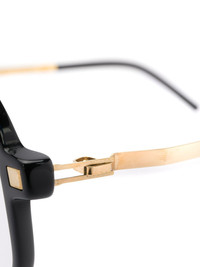 hilla optical glasses Black hilla optical glasses from Mykita featuring straight arms with curved tips, a hinged structure, oversized frames and an internal logo stamp. Imported Composition Metal (Other) 100%, Acetate 100% SIZE & FIT Measurement Bridge Width 0.7 in(1.8 cm) Lens Diameter 2.04 in(5.2 cm) Total Width 5.51 in(14 cm) Arm Length 5.7 in(14.5 cm)