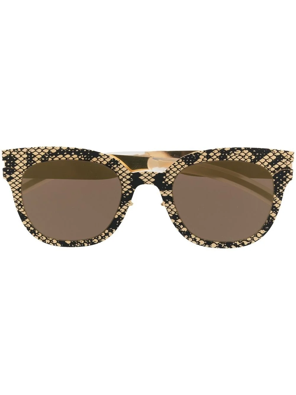 python-print wayfarer-frame sunglasses gold-tone all-over python print brown tinted lenses UV-protective lenses straight arms These glasses come with a protective case. Imported Composition Metal 100% SIZE & FIT Measurement Arm Length 5.51 in(14 cm) Bridge Width 0.94 in(2.4 cm) Lens Diameter 2 in(5.1 cm) Total Width 5.51 in(14 cm)
