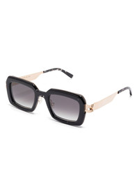 Una sunglasses Highlights - Black - Nose pads - Curved tips - These glasses come with a protective case. Imported Composition Metal 100%, Acetate 100% SIZE & FIT Measurement Arm Length 5.7 in(14.5 cm) Bridge Width 0.94 in(2.4 cm) Lens Diameter 1.96 in(5 cm) Total Width 5.78 in(14.7 cm)