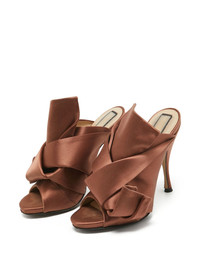 120mm knotted satin sandals Highlights - Brown - Open toe - Knotted design - High stiletto heel - Backless style - Condition: good. this previously owned and used item is in good condition with minimal signs of use. this may include fading of material or plating and scratches. Made in Italy Composition Lining: Leather 100% Outer: Satin 100% Sole: Leather 100% SIZE & FIT Measurement HEEL 4.72 in(12 cm)