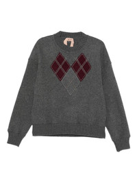 argyle-applique jumper Highlights - Grey - Round neck - Long sleeves - Ribbed hem Made in Italy Composition Wool 68%, Polyester 30%, Polyamide 2% SIZE & FIT Model measurements Height 5 ft 9 in(1.76 m) Bust/Chest 31.49 in(80 cm) Hips 35.03 in(89 cm) Waist 24.8 in(63 cm) Washing instructions Read Manufacturer Guidelines