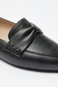 Black leather loafers with bow detailing at front. Logo plaque at the heel counter. Flat rubber sole. Round toe. DETAILS Black Branded insole Upper: 100% leather; lining: 100% leather Made in Italy Style ID: 25EGPLF001NP1N001