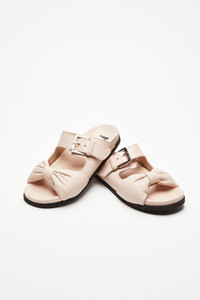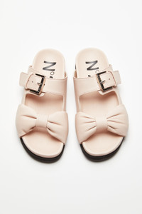 PALE-PINK LEATHER SANDALS WITH A BOW AT THE FRONT. ROUND OPEN TOE. CONTRAST SOLE. LOGO-ENGRAVED BUCKLE FASTENING AT THE FRONT. MORE DETAILS PALE PINK BRANDED INSOLE SILVER-TONE METAL HARDWARE 100% CALF LEATHER; SOLE: 100% RUBBER MADE IN ITALY STYLE ID: 23ESP04220422C001 SIZE AND FIT IT SIZING. FITS TRUE TO SIZE