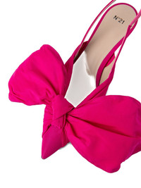 bow-embellished slingback pumps Highlights - Bright pink - Pointed toe - Slender heel - Adjustable slingback strap - Gathered bow detail Imported Composition Sole: Calf Leather 100% Outer: Fabric 100% Lining: Calf Leather 100%