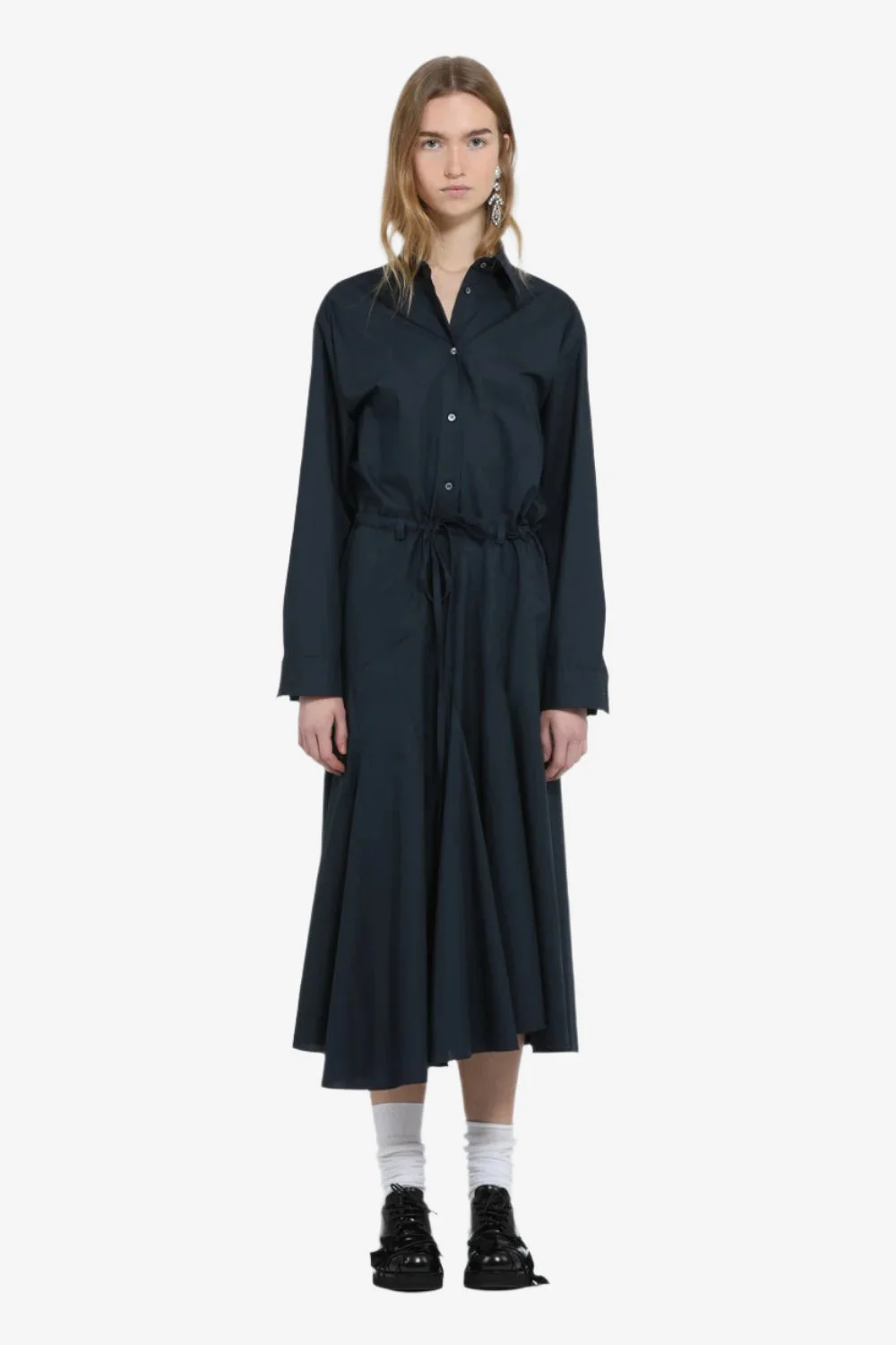 Black shirt dress with adjustable waist belt. Classic collar and front button closure. DETAILS Color: Blue Composition: 100%CO Product Code: 25IN2C0H17101326479 SIZE AND VESTIBILITY The model wears size 40. The item fits regular.