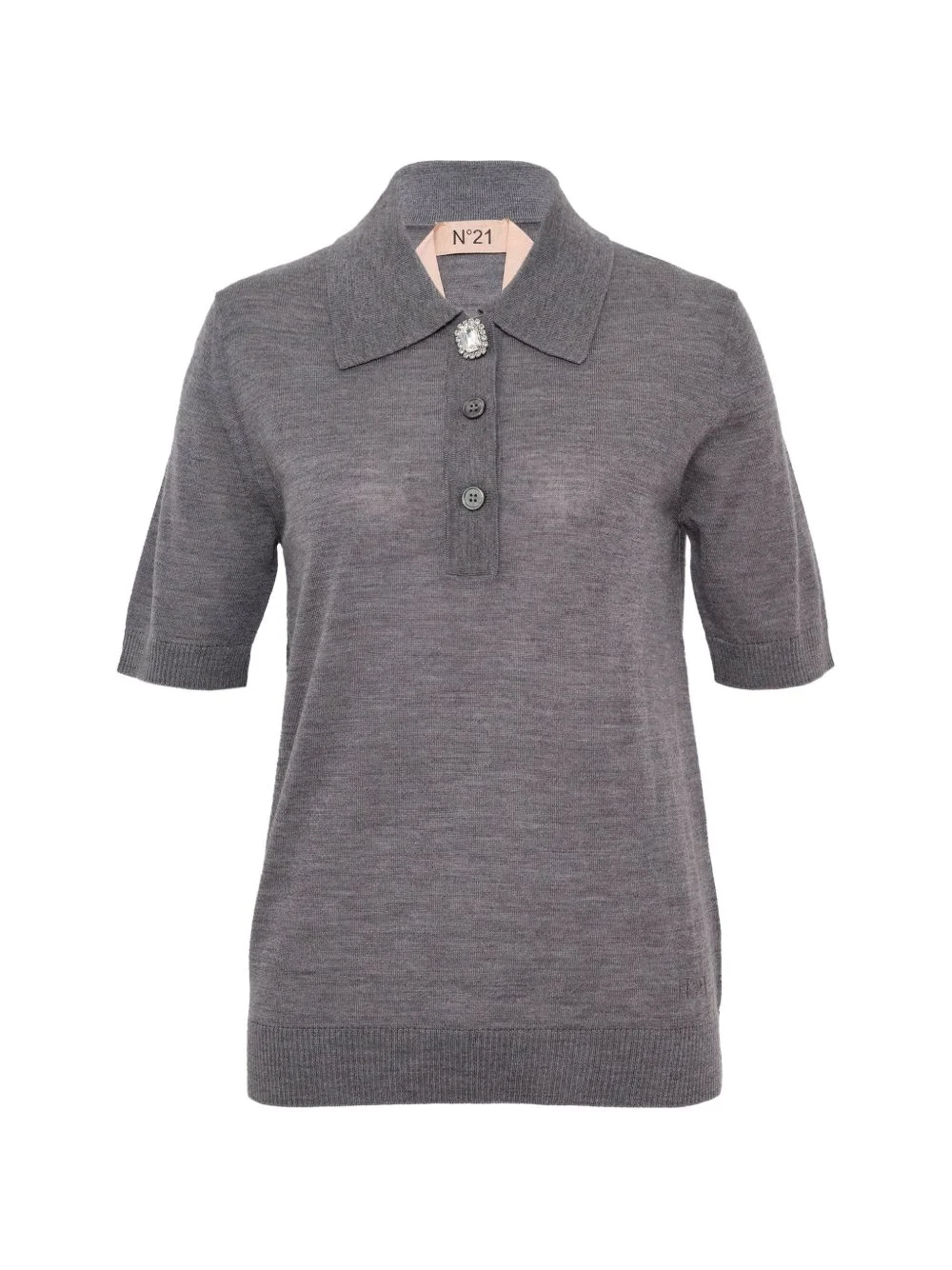button embellished top Highlights - Grey - Button closure - Short sleeves - Point collar - Embellished detail - Knit construction Imported Composition Fabric 100% Washing instructions Read Manufacturer Guidelines