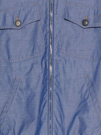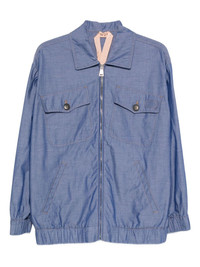 button pocket denim jacket Highlights - Blue - Point collar - Front zip fastening - Two chest flap pockets - Elasticated hem and cuffs Made in Italy Composition Cotton 100% Washing instructions Machine Wash