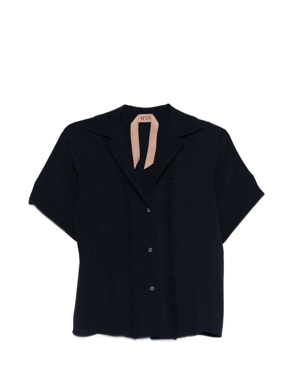 buttoned trim shirt Highlights - Dark blue - Trim - Front button fastening - Short sleeves - Camp collar Made in Italy Composition Acetate 69%, Silk 31% Washing instructions Dry Clean Only