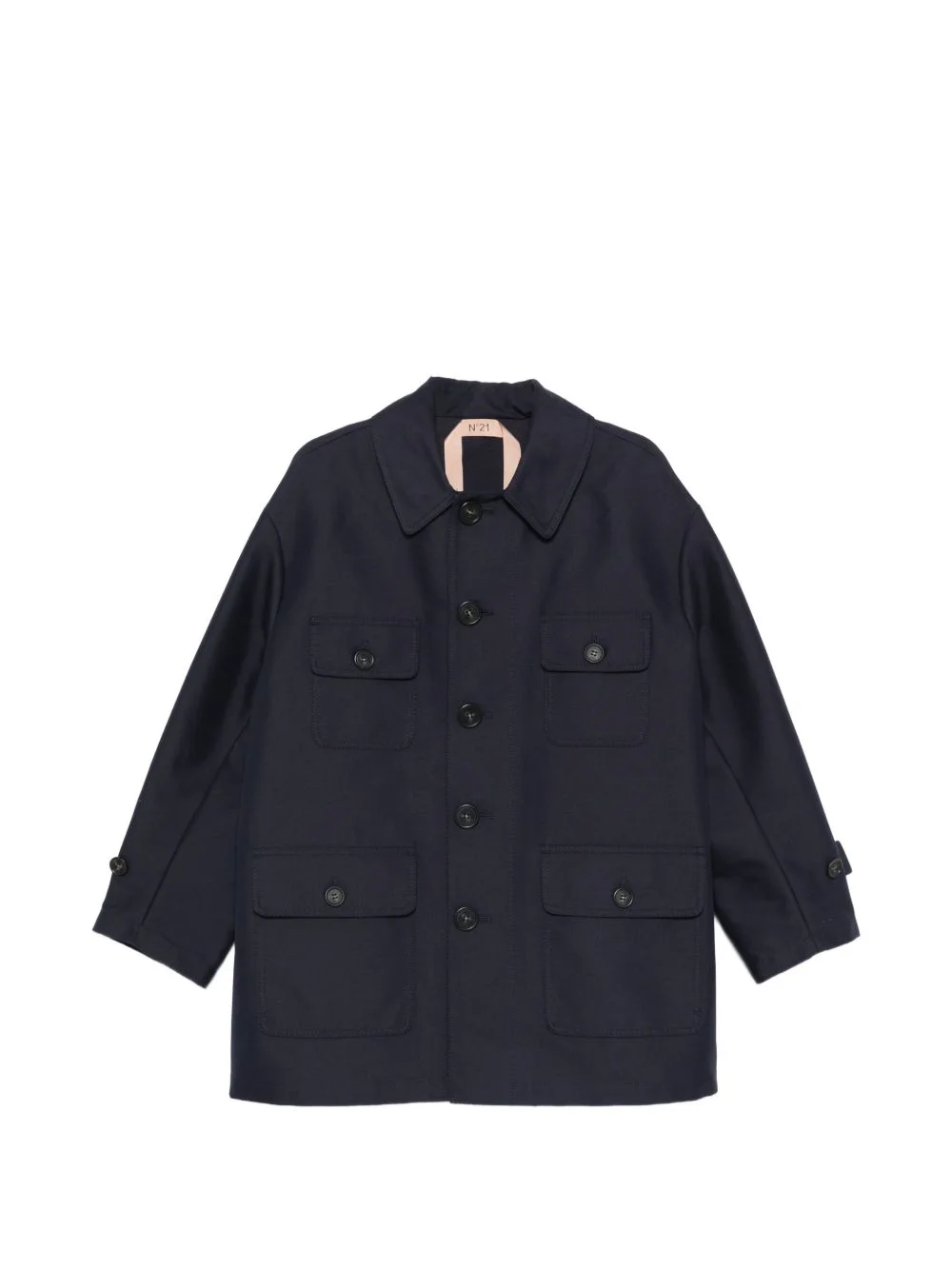 caban pocket coat Highlights - Night blue - Button fastening - Four front pockets - Point collar - Long sleeves - Buttoned cuffs Made in Italy Composition Cotton 73%, Polyamide 27% Washing instructions Dry Clean Only