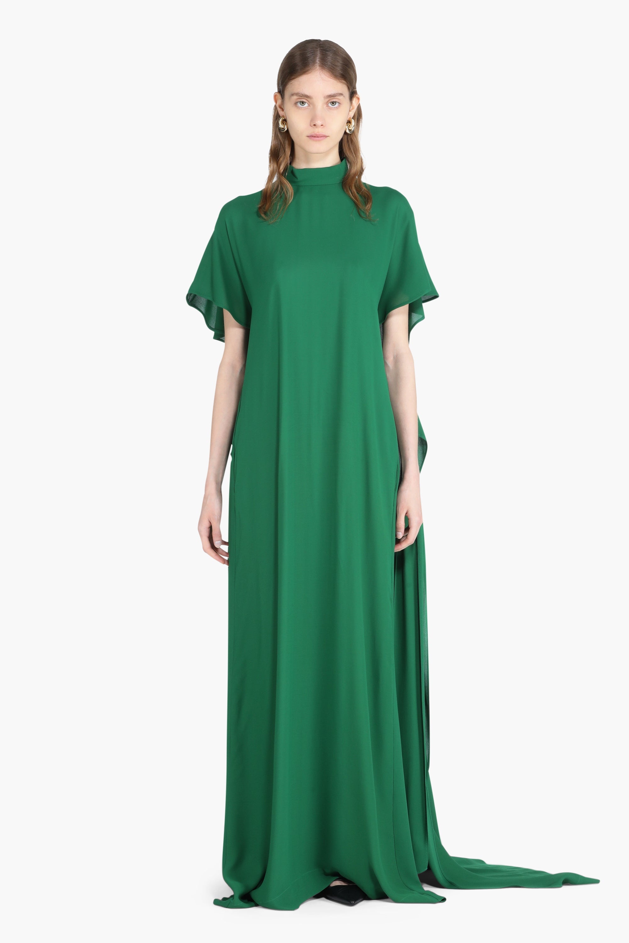 Lime-green maxi dress with floor-length cape detail. Mock neck. Short sleeves. Slip side pockets. Zip side fastening. DETAILS Lime green Regular fit 100% viscose Made in Italy Style ID: 25EN2M0H19151325340 SIZE AND VESTIBILITY Model is 179cm and wears IT size 40