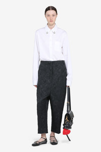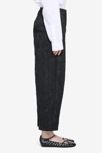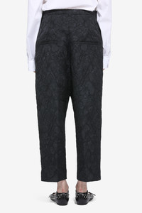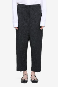 Drop-crotch trousers. Crafted from black jacquard fabric with a textured pattern. Loose, straight fit for a relaxed silhouette. Clean seams along the edges for a uniform finish. DETAILS Color: Black Composition: 97%PL 3%PA Product Code: 26EN2M0B01259959000 Made in Italy SIZE AND VESTIBILITY The model wears size 40 and is 179 cm tall. The garment fits oversized.