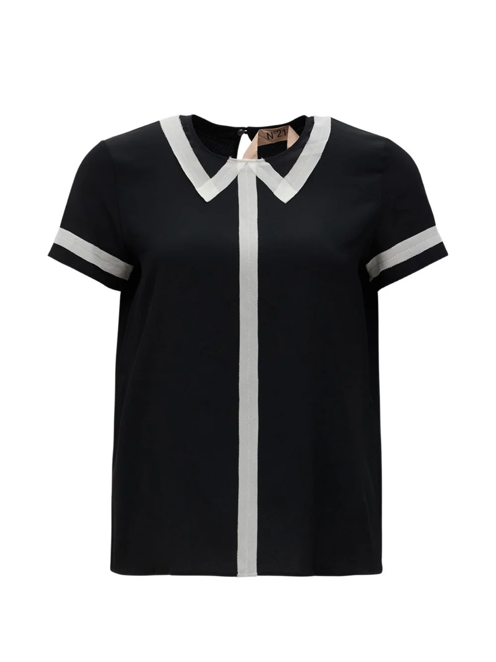 contrast-panelled blouse Highlights - Black - Contrast collar - Short sleeves - Contrast stripe detail - Button fastening at rear - Relaxed fit Imported Composition Fabric 100% Washing instructions Read Manufacturer Guidelines