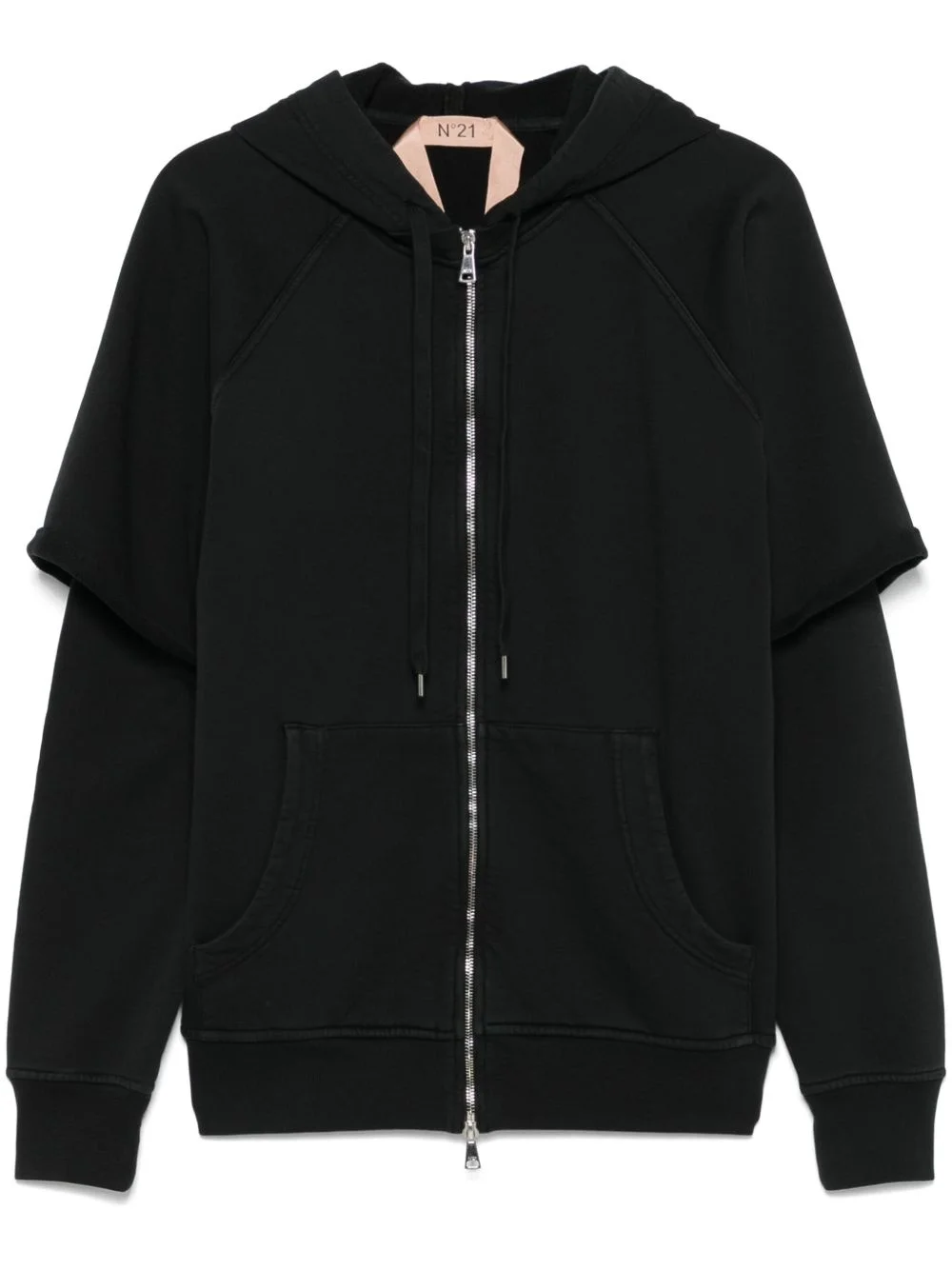 cotton hoodie Highlights - Black - Front two-way zip fastening - Drawstring hood - Two front pouch pockets - Ribbed cuffs and hem Imported Composition Cotton 100% SIZE & FIT Model measurements Height 5 ft 10 in(1.77 m) Bust/Chest 31.88 in(81 cm) Hips 36.22 in(92 cm) Waist 24.01 in(61 cm) FittingInformation Designed to be unstructured, offering a loose fit throughout Made from a midweight non-stretch fabric, this piece offers minimal elasticity when worn