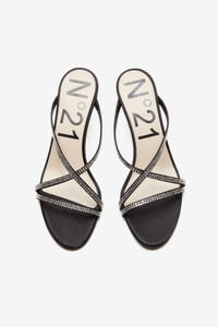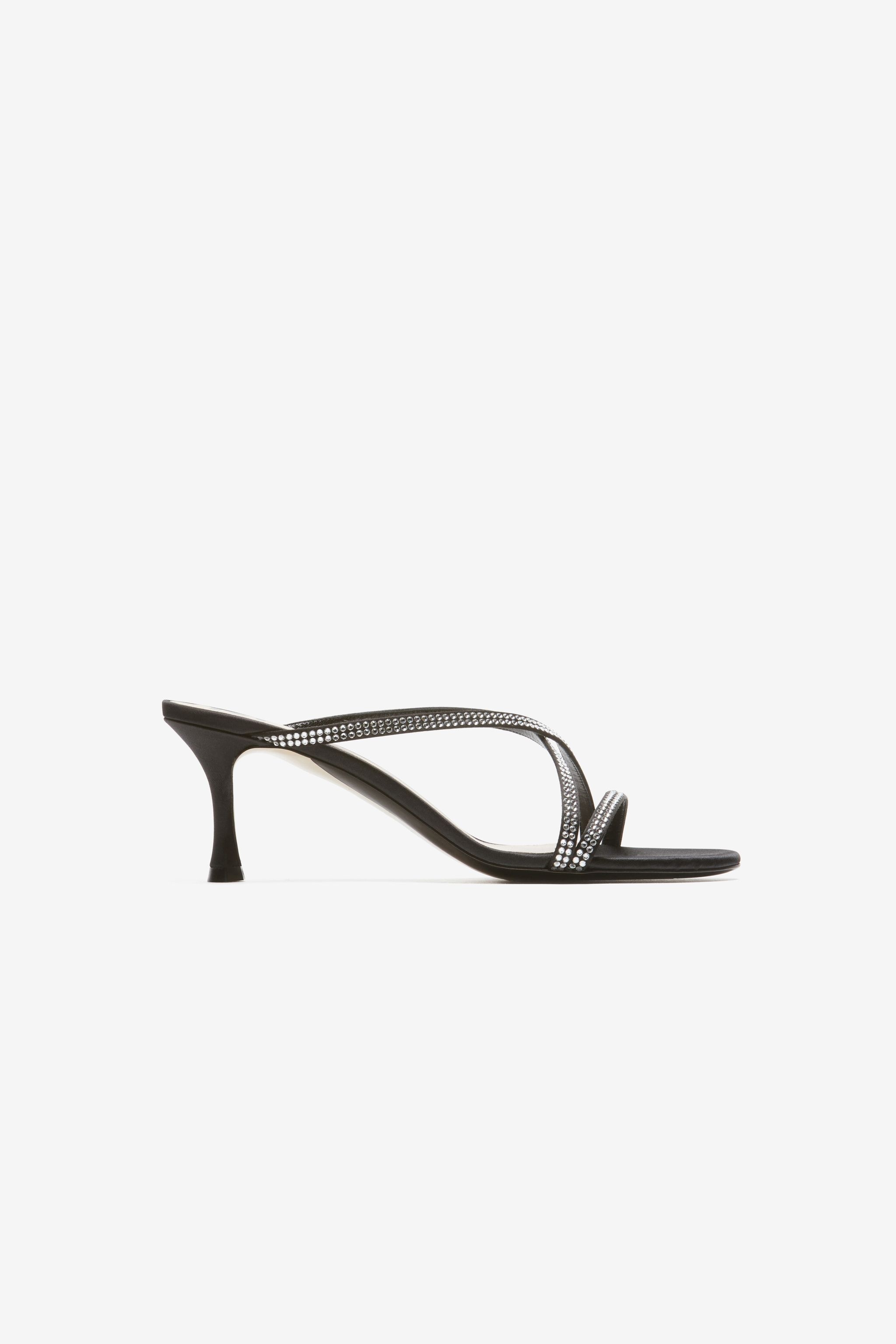 BLACK MULES WITH CRYSTAL-EMBELLISHED, CROSSOVER STRAPS. MID FLUTED HEEL. OPEN ROUND TOE. MORE DETAILS BLACK, SILVER TONE BRANDED INSOLE 75% COTTON, 25% POLYSTYRENE MADE IN ITALY STYLE ID: 23ECPXNV15071X030 SIZE AND FIT HEEL HEIGHT: 60MM IT SIZING. FITS TRUE TO SIZE