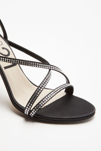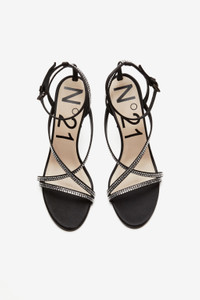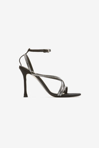 BLACK SANDALS WITH CRYSTAL-EMBELLISHED, CROSSOVER STRAPS. FLUTED STILETTO HEEL. OPEN ROUND TOE. SLIM BUCKLED ANKLE STRAP. MORE DETAILS BLACK, SILVER TONE BRANDED INSOLE 75% COTTON, 25% POLYSTYRENE MADE IN ITALY STYLE ID: 23ECPXNV15072X030 SIZE AND FIT HEEL HEIGHT: 100MM IT SIZING. FITS TRUE TO SIZE