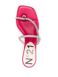 70mm crystal-embellished strappy sandals A classic silhouette is updated to contemporary status with these open-toe mules from Nº21's SS22 collection. In an all hot fuchsia pink hue, these shoes feature a crystal-embellished strappy design and sit upon a sculpted high heel. Highlights - Fuchsia pink - Leather - Open toe - Thong style - Branded insole - Slip-on style - Mid heel - Leather sole Made in Italy Composition Outer: Leather 100%, glass 100% Sole: Leather 100% Lining: Leather 100% SIZE & FIT Measurement HEEL 2.75 in(7 cm) Sole height 0.39 in(1 cm)