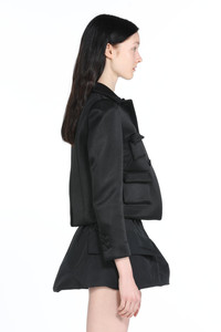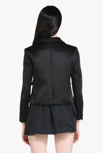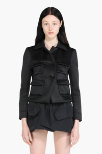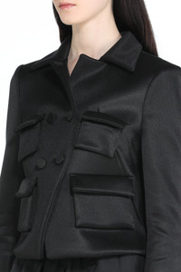Black jacket with a double-breasted silhouette and fabric-covered buttons. Spread collar. Long sleeves with button cuffs. Flap front pockets. Button front fastening. DETAILS Black Regular fit 44% polyester, 36% cotton, 10% viscose, 10% polyurethane Made in Italy Style ID: 25EN2M0L02148279000 SIZE AND VESTIBILITY Model is 179cm and wears IT size 40
