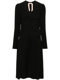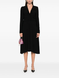 draped midi dress Highlights - Black - Crepe texture - V-neck - Draped detailing - Long sleeves - Two side slit pockets - Mid-length - Unlined - Concealed side zip fastening Made in Italy Composition Polyester 100% SIZE & FIT Model measurements Height 5 ft 9 in(1.75 m) Bust/Chest 32.67 in(83 cm) Hips 36.22 in(92 cm) Waist 24.8 in(63 cm) FittingInformation Designed for a close fit at the chest and waist with a loose fit at the hip Made from a midweight non-stretch fabric This piece fits true to size – take your usual size