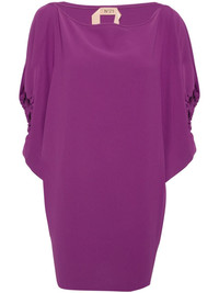 draped mini dress Highlights - Purple - Crepe texture - Draped design - Boat neck - Half-length sleeves - Elasticated cuffs - Two side inset pockets - Straight hem - Above-knee length Made in Italy Composition Polyester 100% Washing instructions Machine Wash