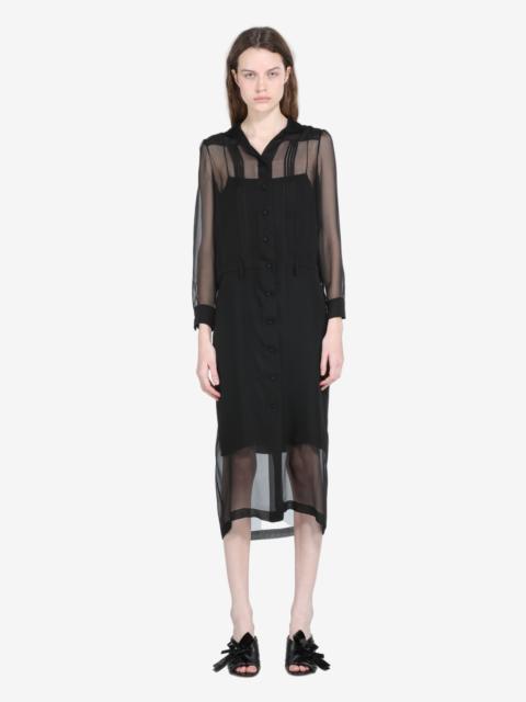 Lightweight dress with slip, crafted from a sheer, flowing material. The design features a front button closure and long sleeves, offering a comfortable and versatile fit. The dress has a midi cut, with details that enhance the silhouette. DETAILS Color: Black Composition: 100% SE Product Code: 25IN2S0H05255869000 Made in Italy SIZE AND VESTIBILITY The model wears size 40. The garment fits regular.