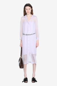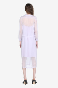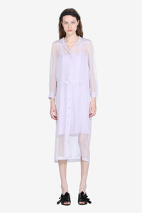 Lightweight dress with slip. Made of sheer fabric, it features a front button closure and long sleeves. The design includes a waistband for a defined fit. The dress's calf-length length makes it suitable for a variety of occasions. DETAILS Color: Lavender Composition: 100% SE Product Code: 25IN2S0H05255867765 Made in Italy SIZE AND VESTIBILITY The model wears size 40. The garment fits regular.