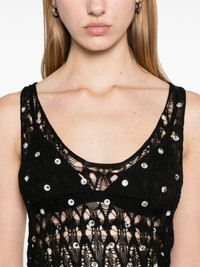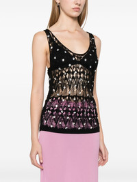 drop stitch-knit top Highlights - Black - Cotton - Drop-stitch knit - Semi-sheer construction - Crystal embellishment - Scoop neck - Sleeveless - Racerback - Ribbed hem Made in Italy Composition glass 100%, Cotton 100% SIZE & FIT Model measurements Height 5 ft 9 in(1.75 m) Bust/Chest 31.88 in(81 cm) Hips 34.64 in(88 cm) Waist 24.01 in(61 cm) FittingInformation Designed for a slim fit that sits just away from the body offering a close yet comfortable fit Made with a midweight knit, this piece offers some stretch Washing instructions Hand Wash