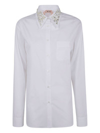 embellished-collar shirt Highlights - White - Crystal embellishment - Pointed collar - Long sleeves - Button fastening - Chest pocket Imported Composition Cotton 100% Washing instructions Read Manufacturer Guidelines