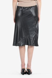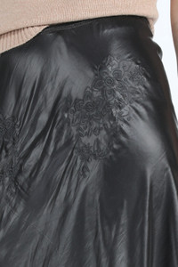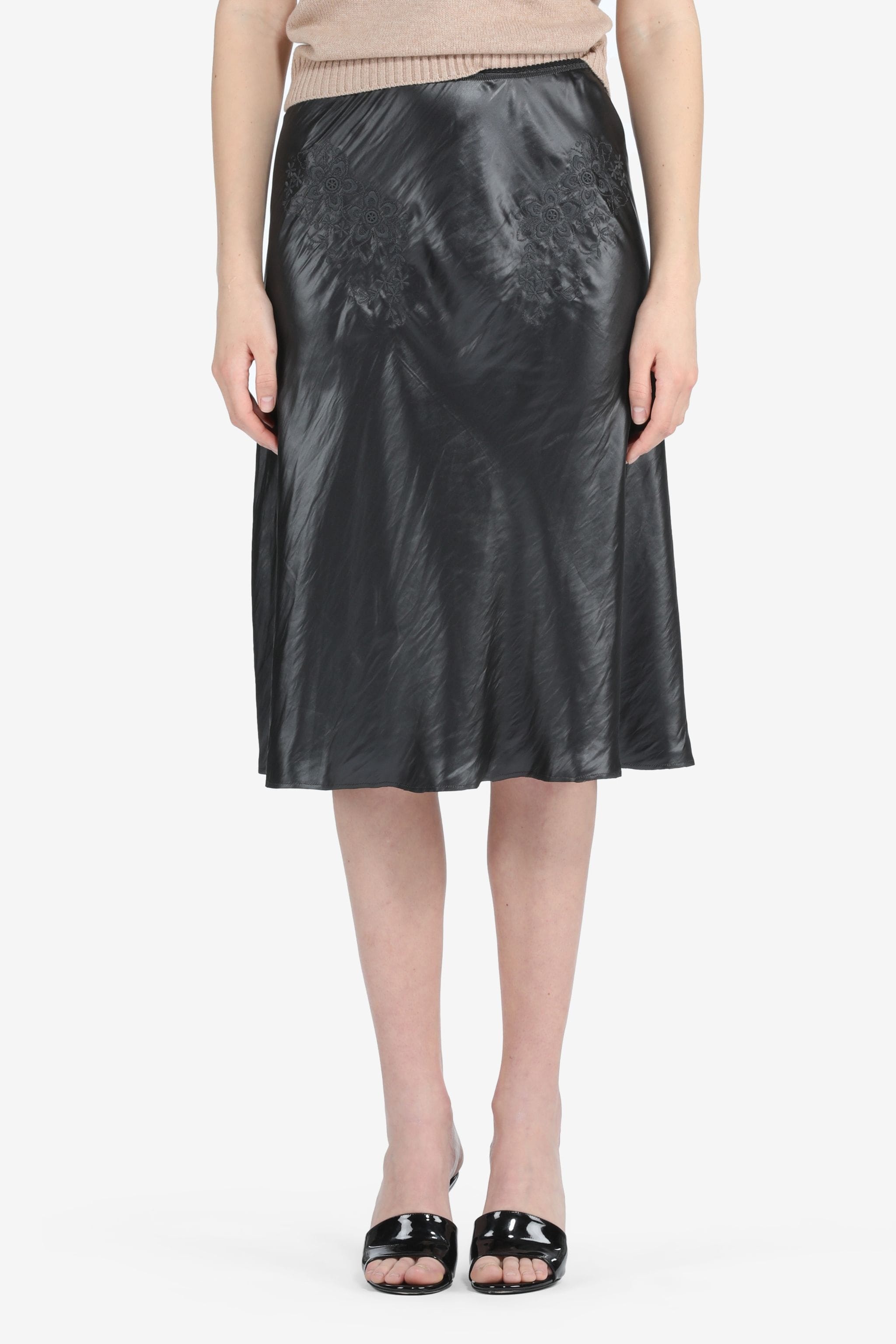BLACK CREASE-EFFECT BIAS-CUT SKIRT WITH FLORAL EMBROIDERY. ELASTICATED WAIST. RAISED SEAMS AT BACK. FLUTED HEM. MORE DETAILS BLACK SLIM FIT 100% POLYESTER DRY CLEAN ONLY MADE IN ITALY STYLE ID: 23IN2S0C09251589000 SIZE AND FIT MODEL IS 179CM AND WEARS IT SIZE 40
