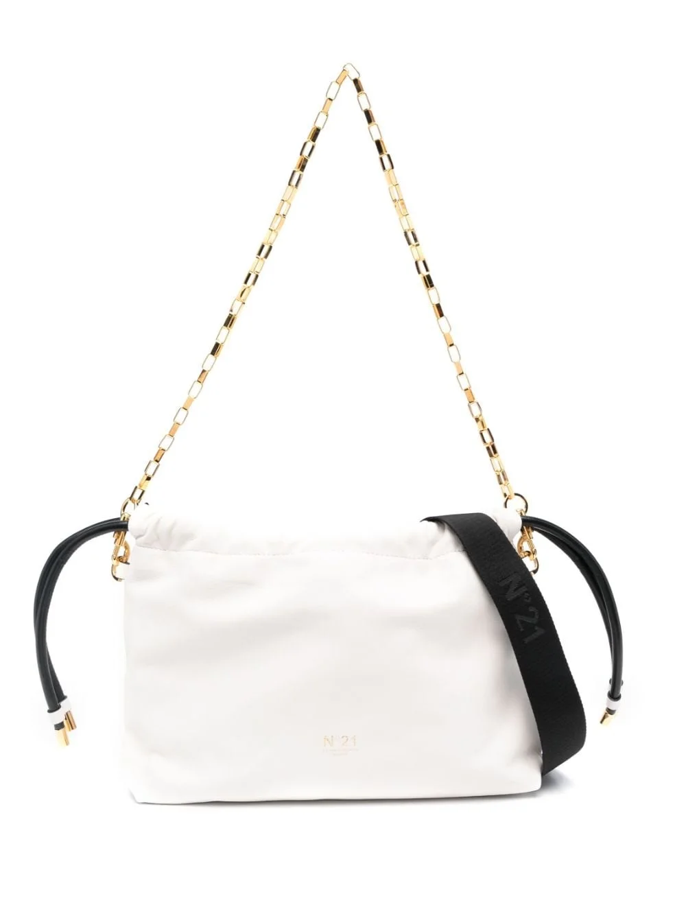 Eva crossboby bag Highlights - White - Calf leather - Logo stamp to the front - Gold-tone hardware - Detachable chain-link shoulder strap - Adjustable detachable logo-jacquard shoulder strap - Top drawstring fastening - Main compartment - Internal logo patch - Attached internal zip pouch Made in Italy Composition Outer: Calf Leather 100% SIZE & FIT Model measurements Height 5 ft 10 in(1.77 m) Bust/Chest 35.03 in(89 cm) Hips 35.03 in(89 cm) Waist 23.62 in(60 cm) Measurement DEPTH 2.36 in(6 cm) HEIGHT 7.48 in(19 cm) STRAP 20.07 in(51 cm) WIDTH 11.41 in(29 cm)