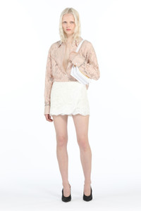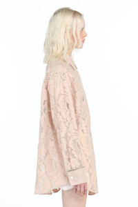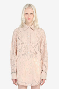 BEIGE MESH SHIRT WITH ALL-OVER FLORAL APPLIQUÉ AND CRYSTAL-EMBELLISHED FRENCH CUFFS. POINT COLLAR. LONG SLEEVES WITH DROP SHOULDERS. CURVED HEM. BUTTON FRONT FASTENING. MORE DETAILS BEIGE OVERSIZED FIT 46% COTTON, 43% NYLON, 5% ELASTANE, 3% GLASS, 3% METAL DRY CLEAN ONLY MADE IN ITALY STYLE ID: 24EN2M0G04247084151 SIZE AND FIT MODEL IS 173CM AND WEARS SIZE M