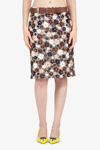 FLORAL-EMBELLISHED SEQUIN SKIRT