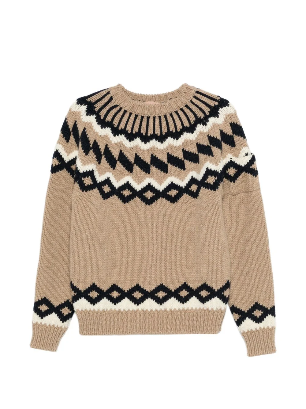 geometric-pattern sweater Highlights - Beige - Geometric pattern - Round neck - Long sleeves - Ribbed hem - Ribbed cuffs Made in Italy Composition Virgin Wool 100% Washing instructions Machine Wash