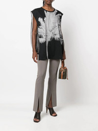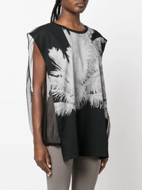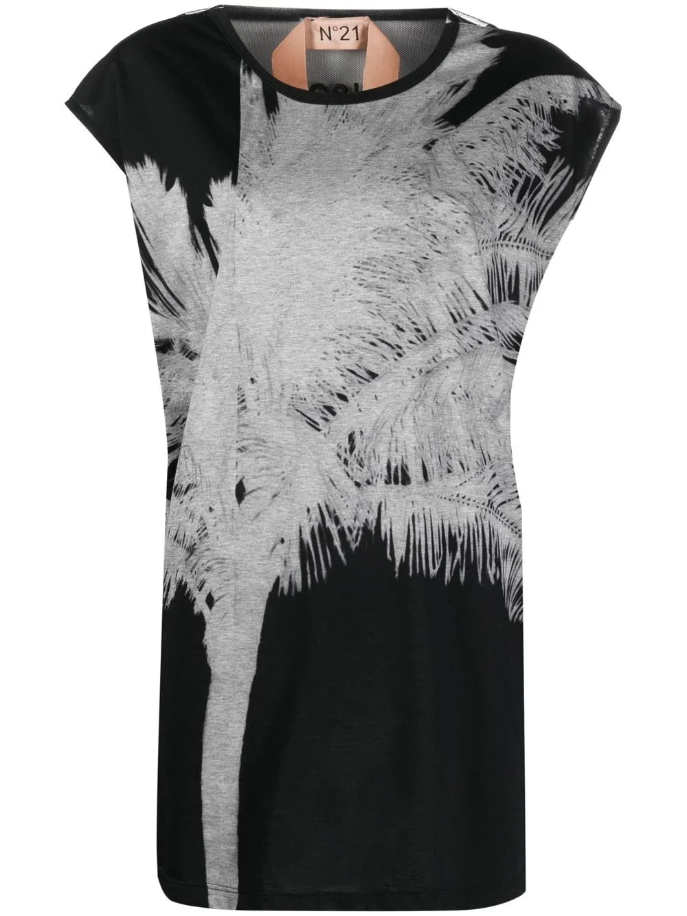 graphic-print top Nº21 incorporates its signature graphic finish into this T-shirt design. The relaxed silhouette is splashed with a palm tree print on the front and boasts a sheer back. Made in Italy Composition Cotton 100%, Polyester 100% SIZE & FIT Model measurements Height 5 ft 10 in(1.77 m) Bust/Chest 34.64 in(88 cm) Hips 35.43 in(90 cm) Waist 24.8 in(63 cm) FittingInformation This piece fits true to size. We recommend you get your regular size Cut for a loose fit Made with a mid-weight fabric Washing instructions Hand Wash